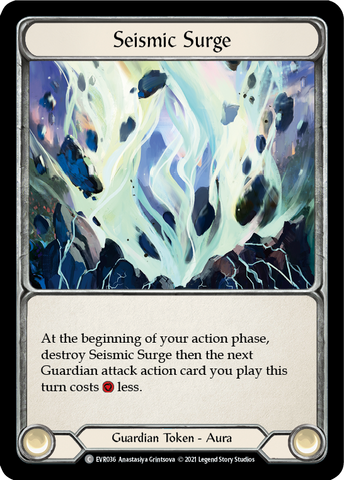 At the beginning of your action phase, destroy Seismic Surge then the next Guardian attack action card you play this turn cost [Resource] less.